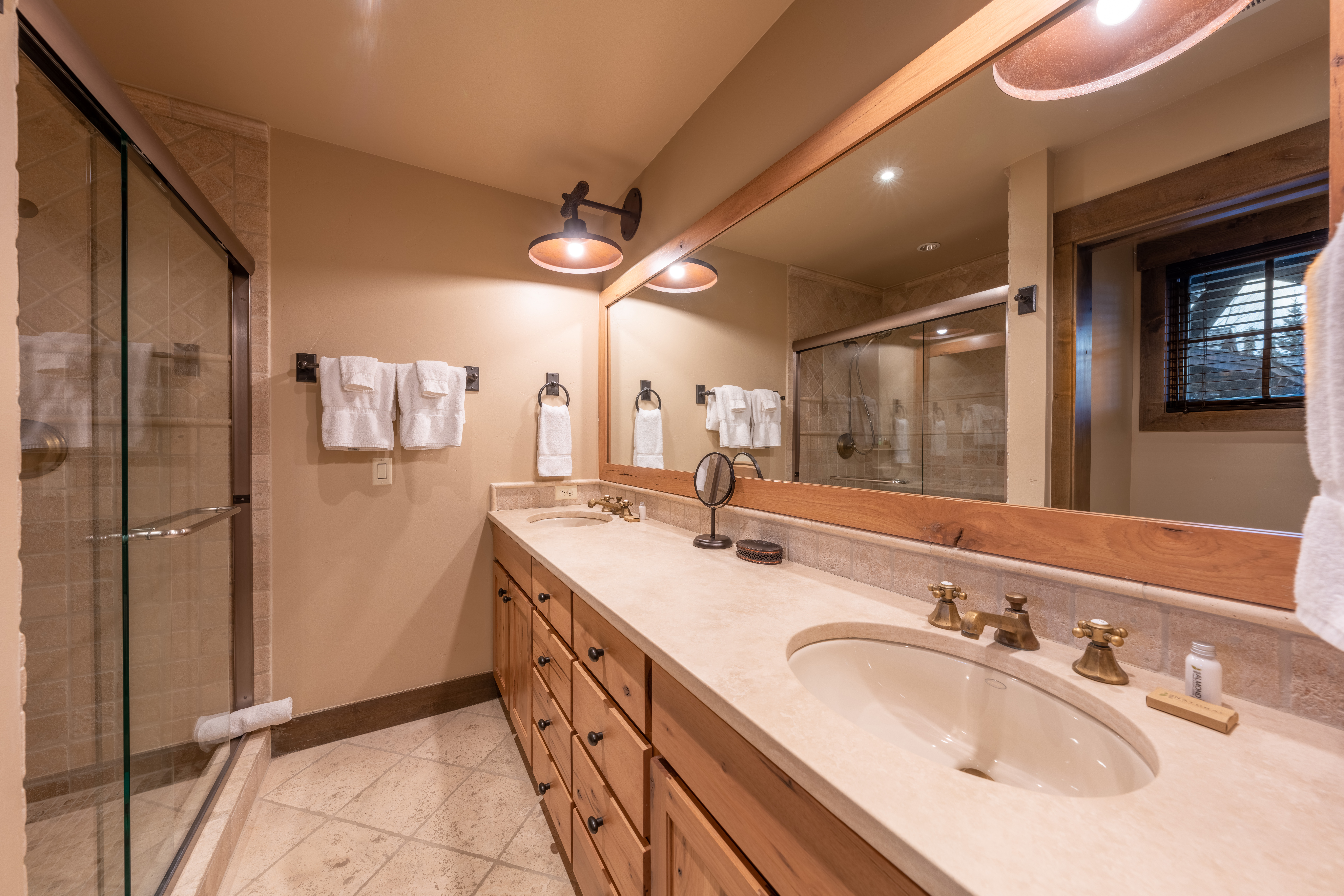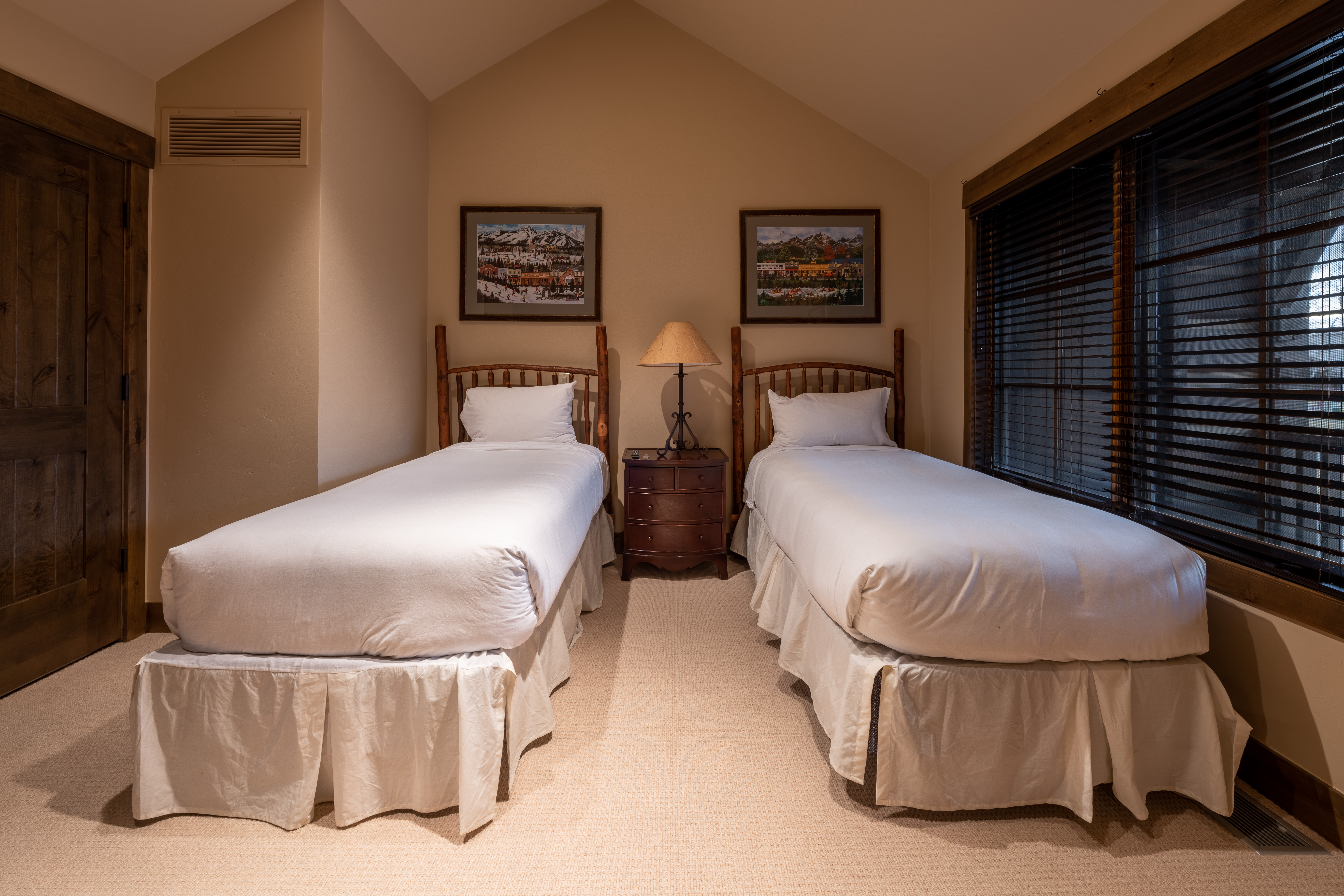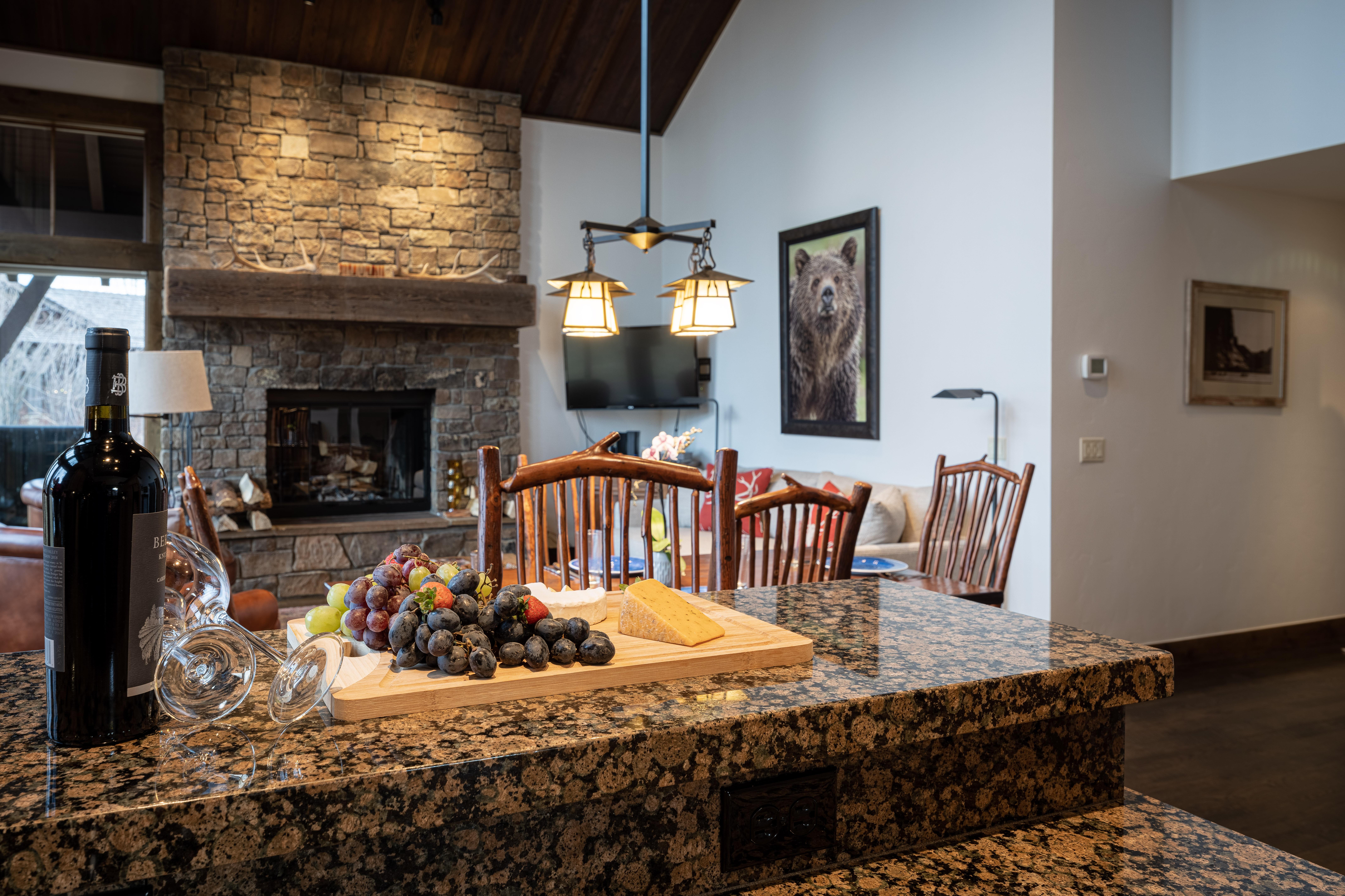 This front line cabin at JHG&T Club is a sought after gem due to its location and views. Its vaulted ceilings and expansive windows capture filtered Teton views. Three separate decks offer options for outdoor relaxation with a seasonal spring flowing nearby. Beautifully appointed to blend with its mountain setting. JHG&T Club is semi-private with spectacular scenery, and offers golf, tennis, pool, fitness, year-round dining, and groomed winter Nordic trails. A cozy 2 bed 3 bath cabin surrounded by mature landscaping and gorgeous cottonwood trees. Expansive windows and vaulted ceilings allow the sunlight to pour in to the living areas. The cabin boasts wood floors, granite counter tops, a lovely copper sink and vent hood, Master bedroom has king size bed has a very large comfortable micro suede headboard and decorated with limited edition by Thomas Mangelson Wildlife Photograph art on the walls you will enjoy the one photograph a massive grizzly bear as well as antique Native American photographs. The Master bath enjoys a twin vanity, jetted tub, massive rain shower head custom tile shower with glass door and beautiful western accented lighting and brass antique fixtures. As well as a jetted soaking tub all with heated floors! The Great room features flagstone fireplace with massive timber hearth and mantle to keep you warm while the 30 foot tall windows on the entire north end of house move you to the Tetons. Big views are taken in from the main area at all angles. AC installed Spring 2022